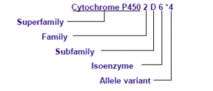 贼广泛使用的命名法描述遗传药理学基因型不同于其他遗传学基因检测,例如代谢相关基因细胞色素p450家族,人类细胞色素P450(CYP)等位基因命名委员会(http://www.cypalleles.ki.se)推荐用“*”命名,见图1。在该系统中,贼常见的等位基因被指定为“* 1”。